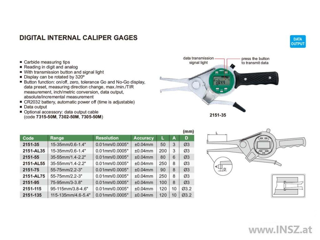 Digital Tastarm-Messuhr für Innenmessung, INSIZE 2151-AL55
